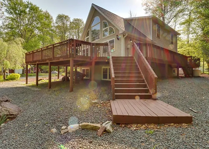 Bietet eine einzigartige Rückzugsstätte im Herzen der atemberaubenden Pocono-Berge. Diese charmante Unterkunft kombiniert rustikalen Charme mit modernem Komfort und ist ideal für Familien oder Gruppen von Freunden, die Entspannung und Abenteuer suchen.